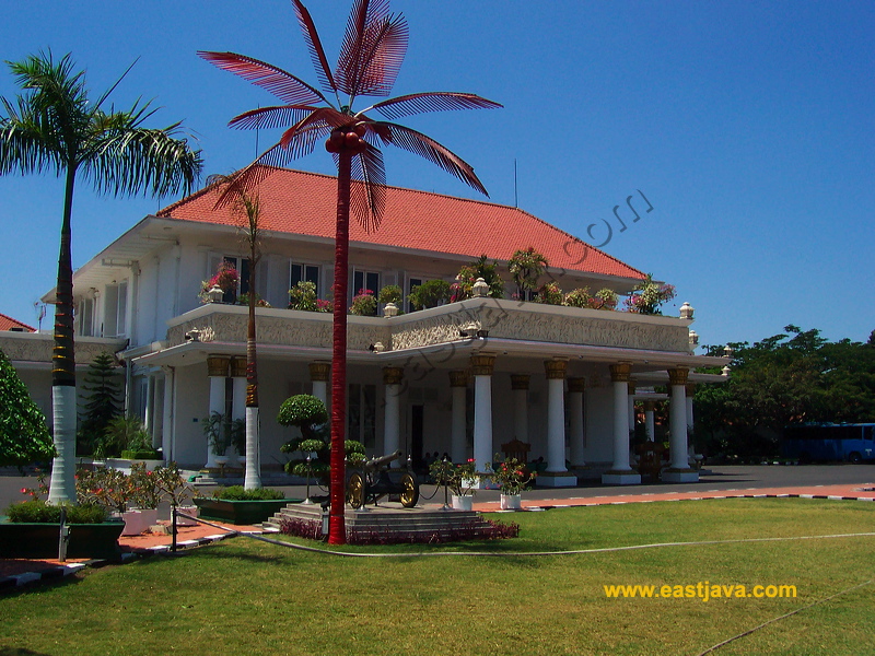 This high-rise building have two mains building with 2016 m2 width, supporter building 4125,75 m2 and located in 16284 m2 width area. At first floor in the building is divided into some rooms for example sitting room, meeting space of East Java Government of First Level. Flagpole palm tree and green grass outspread in the yard add this increasingly view. Building which save many historic events can be visited by tourist but should ask a permission by sending notice to Superintendent of Public Bureau Household of East Java Secretary Government of first level in Pahlawan Street 110, Surabaya.