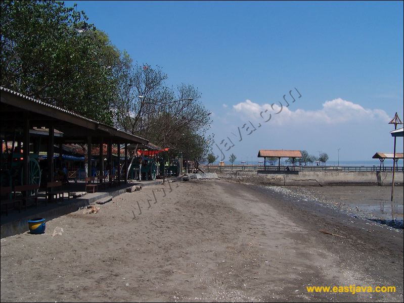 Formerly, Kenjeran Beach is a very beautiful beach in the north Surabaya, but now the cleanliness in that beach begin to befouled because of the people around that beach did not keep that beach clean. In 1963 until 1965 the beach still clean because there was not village near there. The soil of Kenjeran is from mud.The level of water decrease reaching 2 kilometers. The tipping tidal wave of Kenjeran Beach is once per day, and its start from 8 am to 2/2.30 pm for 2 kilometers. The animals in there are jelly fish, reef, eel fish, and prawn. If the water is subsided the animal are only small crab and snail.