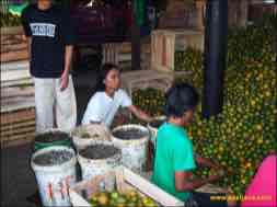 Around 35 booths inhabit through Peneleh Street. They also release electrical garbage fee 15 thousand rupiahs per day. The area in Indonesia that known as the center of Oranges that is Ujung Pandang, Bali, Jember, Banyuwangi, Lumajang. According to the merchants, now, the quality of best orange comes from Jember. The price of fruit is depends of the season. If it had the season, meant abundance result while the request tend to stable hence price will leap, so also on the contrary. The price of orange is determined based on the quality of fruit and classified in 5 categories that is Grade A Rp 4500 - Rp 7000, Grade B Rp 3500 - Rp 4500, Grade C Rp 2500 - Rp 3500, while last Grade 4 around Rp 1000 per kg. Purchasing minimize for oranges per crate or party. Out of job one packaging cases 5, 10, 20, 40 kg.